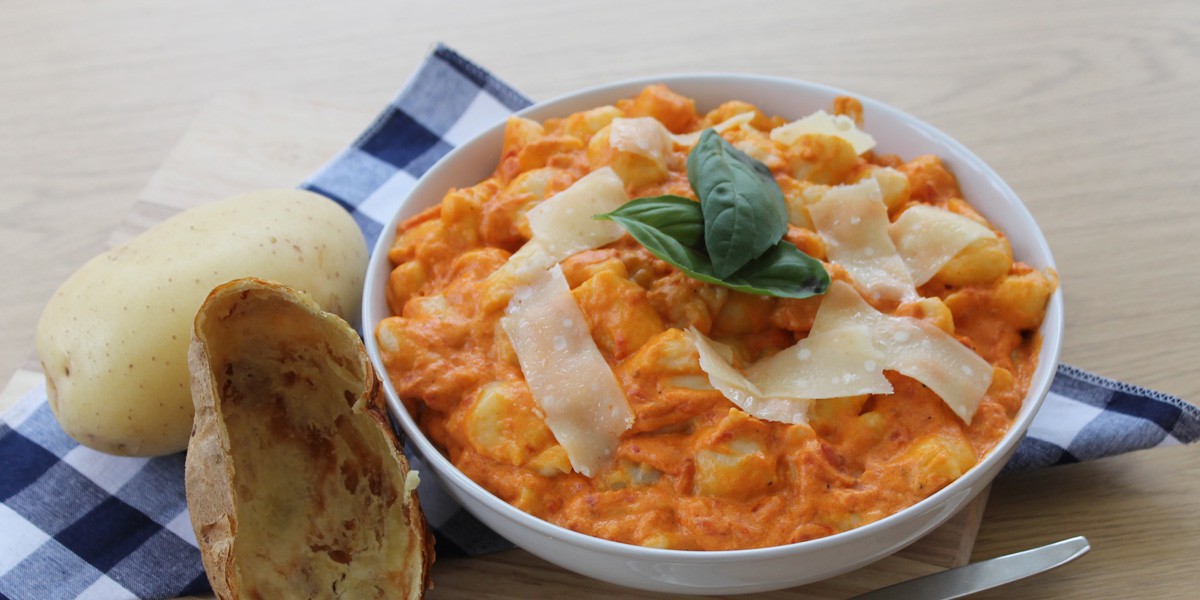 - Drain the Gnocchi, pour back into the pan and stir through the sauce.